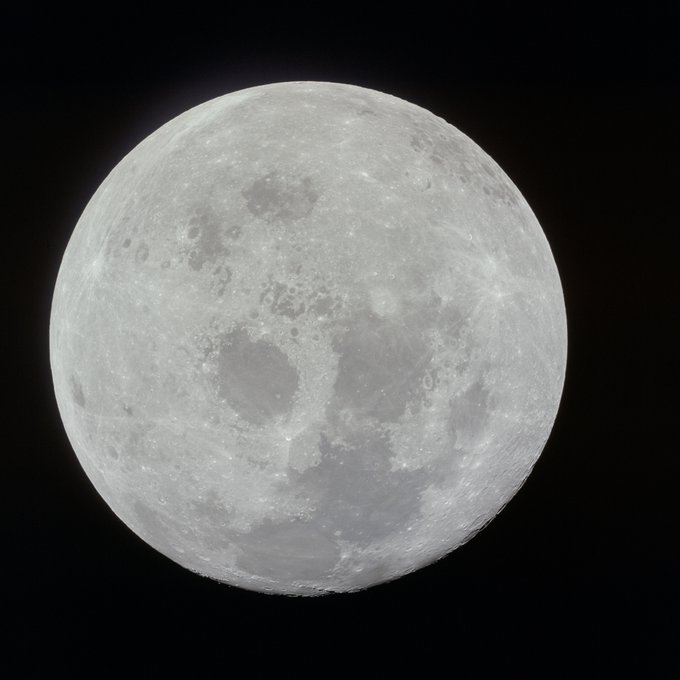 What a beautiful sight to see! A view of the entire nearside of the Moon was photographed on July 21, 1969, from the Apollo 11 spacecraft during its trans-Earth journey homeward. Little known fact, when this picture was taken the spacecraft was already 10,000 nautical miles away. https://t.co/33eYhOjTe4